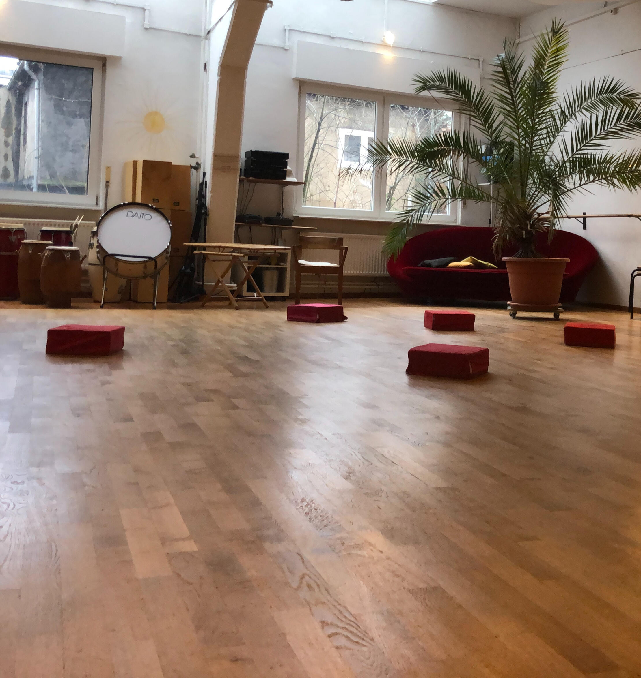Mit dem "Tanzstudio" von Anne Hoff in der Grundstr. 3 steht uns für die Dynamische Meditation ein großzügiger Raum von 100qm zur Verfügung, der mit Eichenparkett ausgelegt ist.